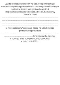 TOP SPORT JUDO CUP oświadczenie udziałU14